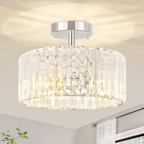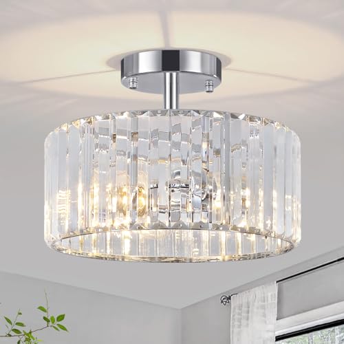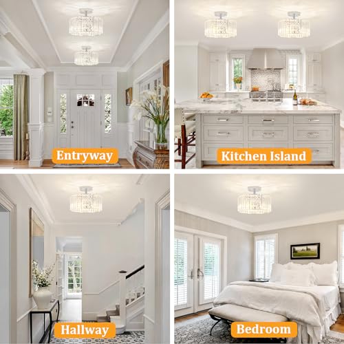 ?Wide Application?The crystal ceiling light flush mount light fixture has a modern style, when the light is on, it will create a romantic atmosphere creating a blend of your decorative style that fits anywhere, Ideal as a hallway light fixtures ceiling, bedroom ceiling lights, ceiling lights for living room.