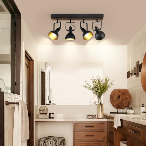 Modern Farmhouse Design: The combination of black metal and wood in our track lighting fixtures ceiling adds a touch of modern farmhouse design. The black exterior and gold interior shades create a warm ambiance, Suitable for home decoration.