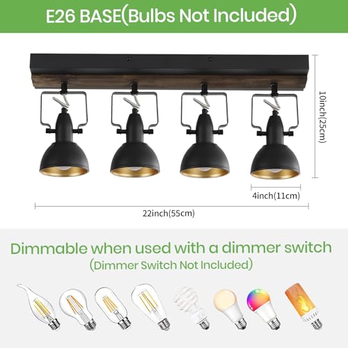 E26 Compatibility: This track lighting requires E26 bulbs (not included). When used with a dimmer switch, it enables full dimming control to create the Suitable lighting atmosphere (bulbs and dimmer switch not included).