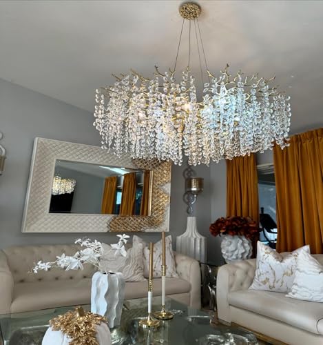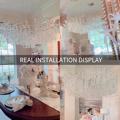 ?????Easy Assembly & Adjustable Design?With a size of L39" x H16" and an adjustable cable length of 0-66 inches, installation of the dining room chandeliers over table is effortless. The aluminum alloy branches on the tree branch light fixture are lightweight yet sturdy, easily removable, and assembled. Hang the crystals, ensuring the front side faces up. Refer to the instructions for guidance