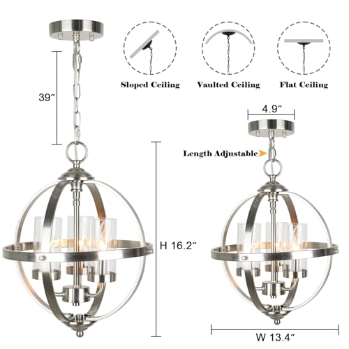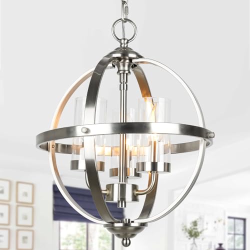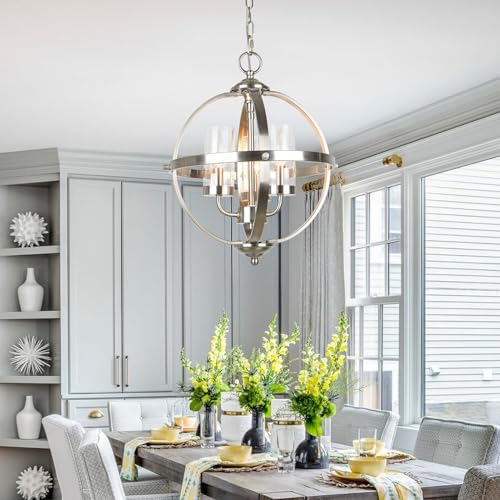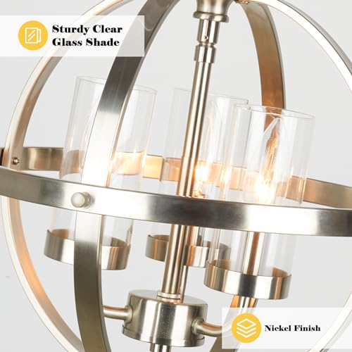 Modern Dining Room Chandelier: This globe chandelier light feature showcases a sleek round frame with a nickel-plated finish and glass covers, diffusing bright, radiant light across your space. Its modern elegance seamlessly enhances any dining area, making it a stunning focal point;