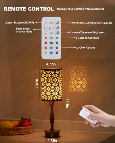 REMOTE CONTROL TIMER & DIMMER?Our battery operated lamp come with a remote, remote control timer offers various operating modes, including 30MIN, 60MIN, and 120MIN. These options allow you to customize the schedule and settings according to your specific needs. The light bulb is equipped with dimmable functionality, allowing you to adjust the brightness to your desired level