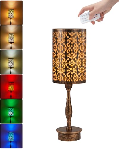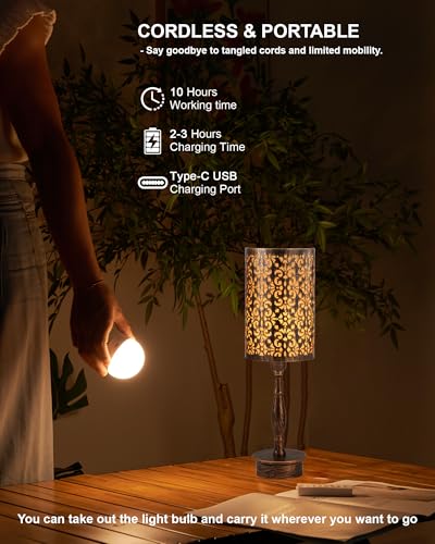 Distinctive, Ambient Lighting - The decorative USB desk lamp with its brass design, black metal shade, and flower pattern enhances any space. Perfect for living rooms, bedrooms, home offices, or outdoor camping (dresser desk windowsill corner side entryway end table bookshelf table), it serves as both functional lighting and a decorative piece. The dimmable lamp is an ideal gift for your friends and family