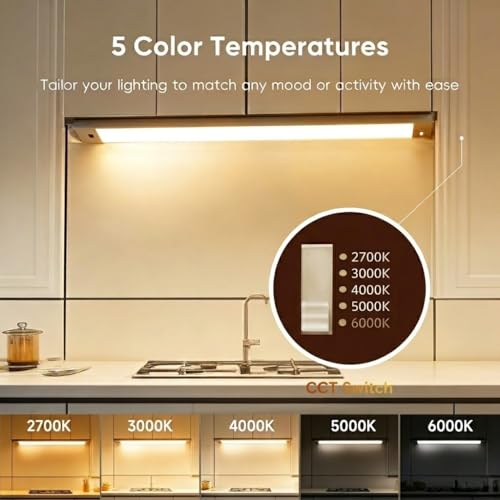 ?3 Color Temperatures Adjustable?The cabinet light can be adjusted to 3 color temperatures (3000K, 4000K, 5000K) to fit for different applications. Being able to match the other light and enjoying the new lighting atmosphere in the room.