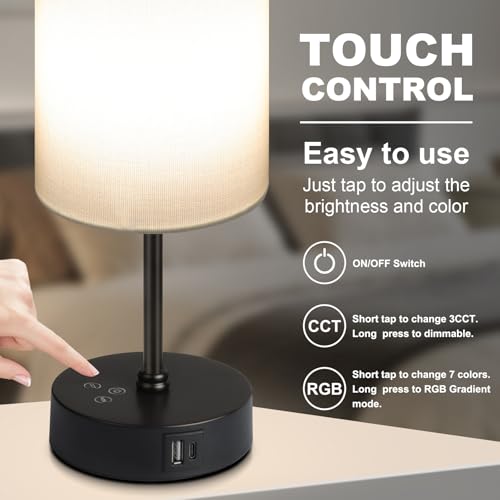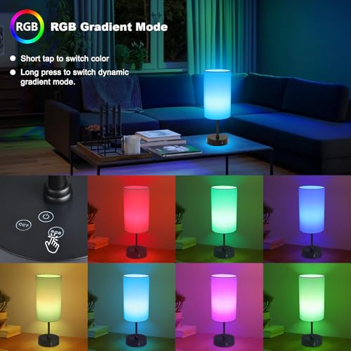 The 3 CCT and RGB Lighting Modes: This small table lamp not only has three color temperatures, but also designed with RGB modes. You can choose 3 cct (3000 K/4500 K/6500 K) for daily home lighting, or use the RGB 7 colors mode as ambient light for special occasions like dating, party, home cinema.
