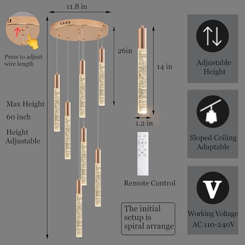 High Ceiling Foyer Chandelier: Canopy diameter 11.8 inch, Overall light max height 59 inch (Height Adjustable). Modern spiral design make this raindrop pendant light perfect for foyer, staircase, living room, entryway or any spaces with high ceiling