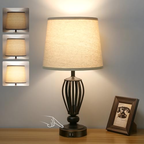 Noiseless 3 Way Dimmable: Build-in a sensitive touch sensor, the dimmable bedside lamp has four dimmable options (Low, Medium, High, Off). Simply tap anywhere of the base, you can choose the brightness for various applications. Without any noisy pattering sound making, you will never have the worries of interrupting someone who has a light sleeping