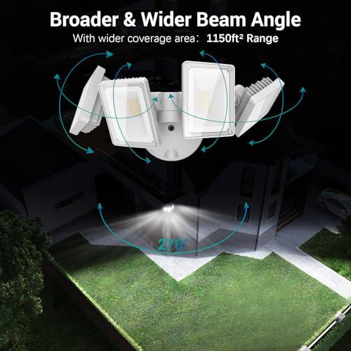 ?Wider Coverage Area?Featuring a unique design with four adjustable lamp heads, this security light covers a wide 270-degree angle for increased lighting range and flexibility in adjusting angles.