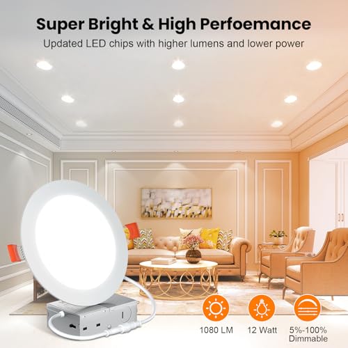High Brightness: The 6 inch slim pot lights use the world's leading LED chips with higher lumens and lower power. 1080LM consumes 12 Watts, which equals to 110W halogen lamp, saving you up to 90% in energy costs a year.