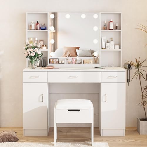 [Beautiful & Practical Make up Vanity Station] Elegant white vanity desk, perfect combination of vanity & cabinet, can match perfectly with other furnitures in your bedroom and dressing room, also perfect for beauty salons, spas and photography studios.