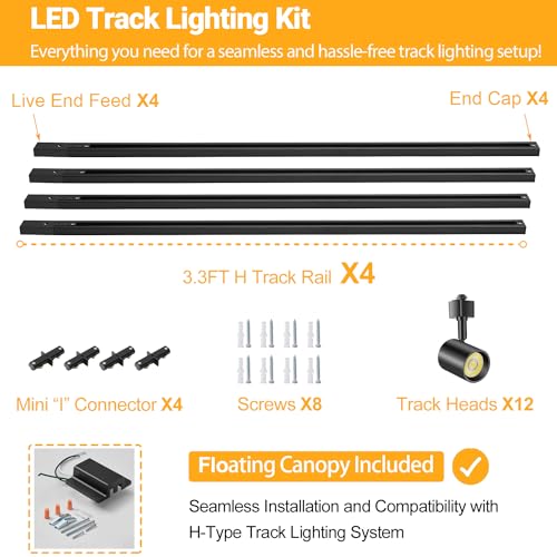 Item 1: VANoopee H Track Lighting Rails Kit, 13FT H Type Track Rails Black with End Caps and Live End Feed Connector, Compatible with Single Circuit 120V H Style Track System, for H LED Track Lighting Heads