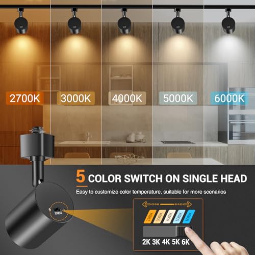 5 Color Selectable: Customize your lighting experience with innovative 5CCT H track light heads. Easily adjust the color temperature to match your surroundings or personal preference. Choose from 2000K warm white, 3000K soft white, 4000K cool white, 5000K daylight white, or 6000K daylight glow
