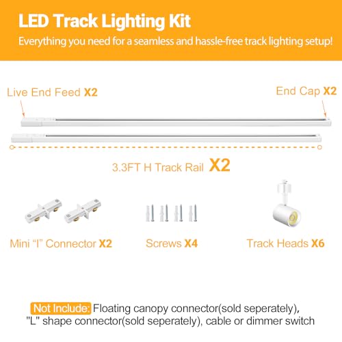 ???? Easy to Install? VANoopee track lighting kit includes 6 track heads and 2X3.3FT H type track rails. It also comes with live end feed, making it simple to hardwire. You can easily adjust the light angles, both vertically and horizontally, to perfectly suit your environment