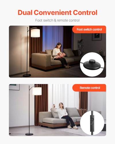 Dual Control Modes: Conveniently control the light with a remote or foot switch. No need to get up or bend over! The foot switch of the floor lamp is especially handy for hands-free operation, providing you with immediate control, and it is ideal for a comfortable and efficient living space.