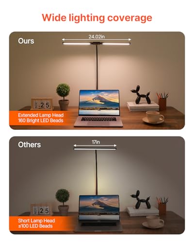 Bright and Eye-Caring Lighting: This double-head LED desk lamp features a 24-inch (61 cm) extended lamp head, providing wide coverage to illuminate your workspace. It contains 160 high-brightness LED beads, offering bright and even lighting, creating a well-lit and comfortable environment for your work.