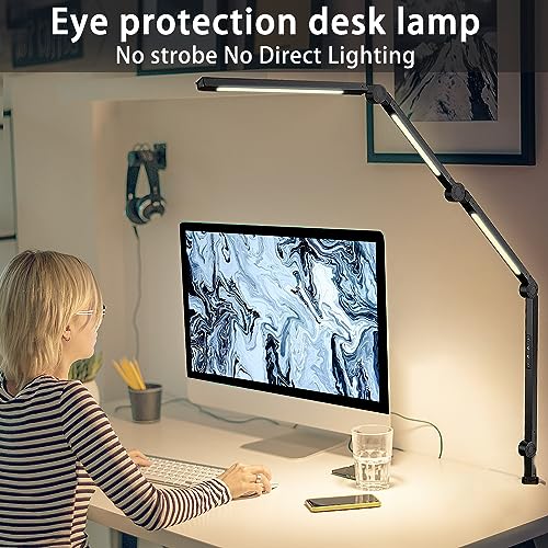 Adjustable swing arm lamp: Super flexible swing arm desk lamp allows you to position the light in any direction you need. It has 3 light bars that are 290° rotatable, 4 sturdy pivots that can move up to 270°, and a clamp base that can rotate 360°. You can effortlessly point the light to the desired location to create ambient lighting.