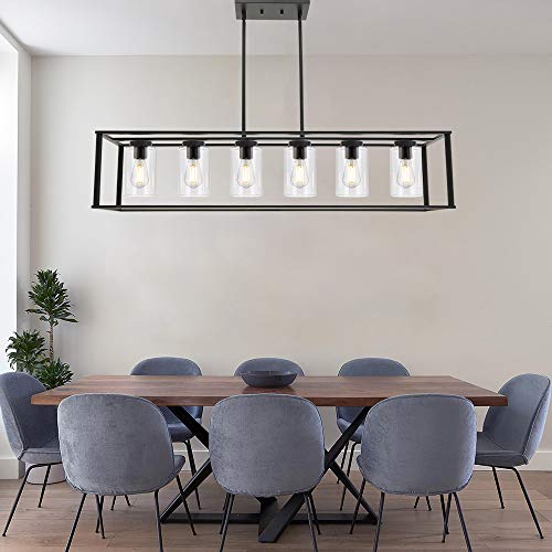 ?Contemporary Design: This simple linear farmhouse kitchen island pendant lighting with clear glass shade, unique open cage designed to illuminate the heart of your kitchen, dining room foyers, bar ,restaurant ,hotel or farm styled places.