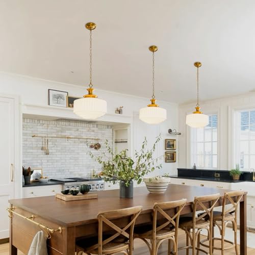 Ambient Lighting: Whether your is modern rustic style, retro style, or farmhouse style, Modern California Costal Style, this milk glass pendant light can match your space perfectly, creating a cozy and inviting atmosphere in any space. The island pendant lights for kitchen Is Perfect for the kitchen island, Bathroom, Hallway, entryway, Foyer, Or Bar Cafe.