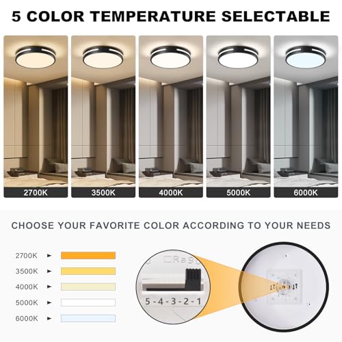 Dimmable: This LED kitchen light can adjust the brightness from 10% to 100% at will. The ceiling lights can be adjustable in 5 color temperatures (2700K-6000K) by the switch around the LED lens. Compatible with dimmer switches and normal switches(Dimmer and switch NOT included)
