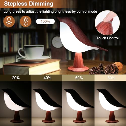 ?Touch Control & 3-Way Dimmable?This small bird lamp is touch activated and super simple to operate. Just simply tap the control sensor on the top of the bird lamp, you can switch power on/off and light colors (warm light/natrual light/cold light). LONG PRESS the touch sensor to adjust brightness (high to low, low to high), making your eyes more cormfortable.