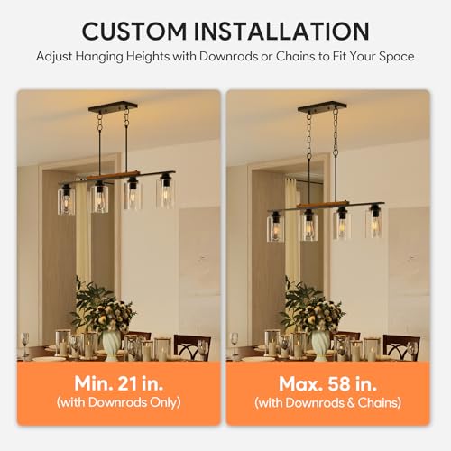 Height Adjustable: Easily adjust the height of this kitchen island light fixture from 21" to 58" with convenient downrods and chains, ensuring a perfect fit for your kitchen island, dining table, hallway, living room, and more