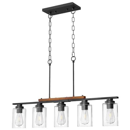 Inviting Ambiance: This 5-light farmhouse linear chandelier welcomes E26 bulbs up to 60W, providing bright, soft, and comfortable lighting to create a warm and inviting dining atmosphere