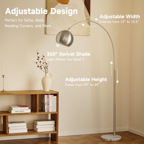 Sturdy Marble Base: The marble base weighs 14 pounds, providing solid support for this slender arching lamp while occupying just a 1-foot circle of floor space. It fits seamlessly into nearly any corner of your bedroom, living room, or office