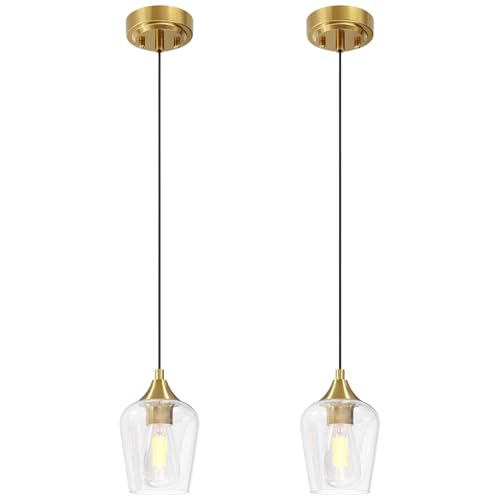Illuminate in Style: Bathe your kitchen island in warm welcoming illumination with Vonluce's pendant light set. The elegant combination of sleek gold accents and clear cylinder glass shades brings a touch of modern charm to your space