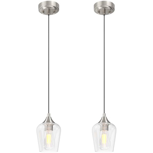 VONLUCE Pendant Lights Kitchen Island, Brushed Nickel Pendant Light Fixtures with E26 Base & Adjustable Cable, Modern Pendant Lighting with Glass Shade for Living Room Bedroom Hallway, 2 Packs