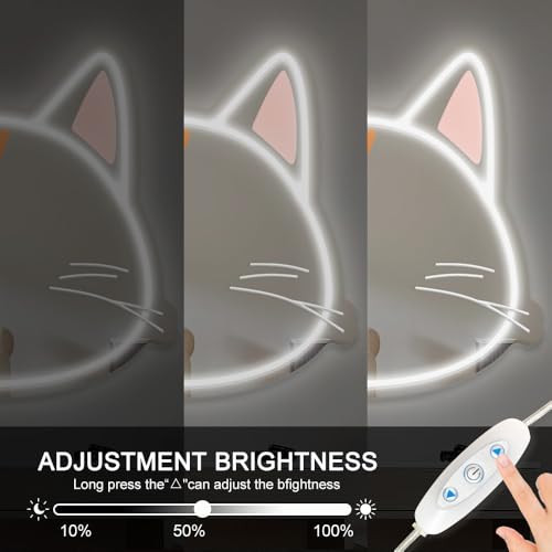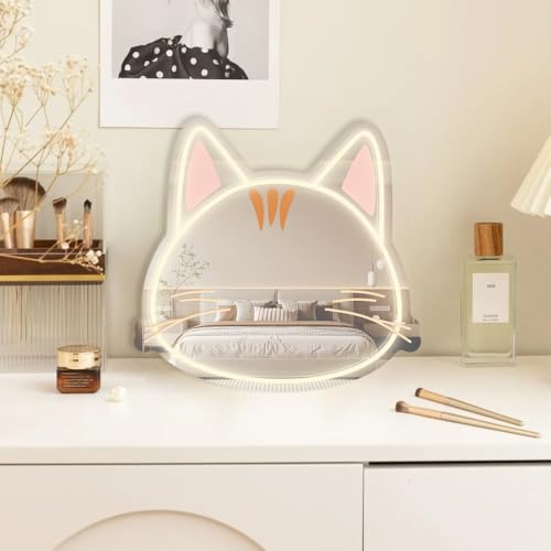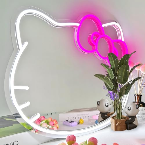 Wall Mirror with 12V Adapter, L16.1" W14.1" Anime Neon Sign for Dresser, Locker Room, Living Room, Neon Light up Acrylic Mirror with Dimmable for Children's Gif Neon Mirror Vanity Mirror with Lights