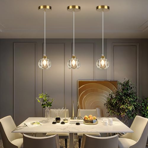 CHANDELIER SIZE: This gold pendant light has a single diameter of 4 inches, a maximum mounting height of 51 inches, a minimum mounting height of 6 inches, and a weight of 2.65 pounds. You can adjust the chandelier chain according to the mounting height