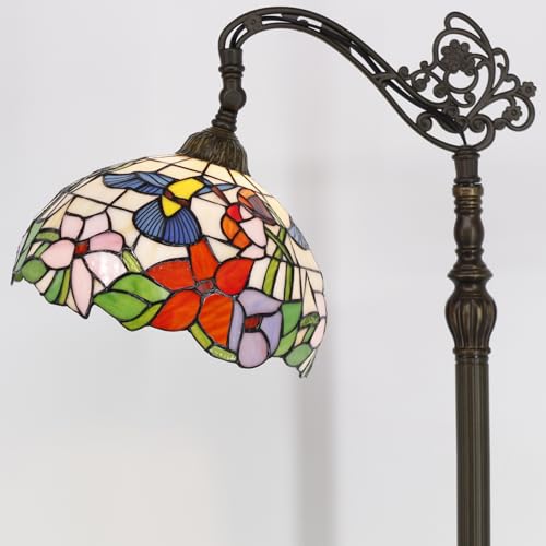 Werfactory Design: The lampshade wide 12 inch, The floor lamp height 64 inch. The resin base wide 11 inch, finished with antique bronze, weight 4.8KG, provide a good stability from falling. Foot switch 43 inch far from plug, 45 Inch from base, UL listed.