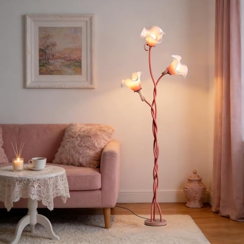 UNIQUE FLORAL AND VINTAGE DESIGN --- Featuring charming lily-of-the-valley inspired acrylic shades, this LED floor lamp beautifully blends nature with retro decor. Its twisting vine silhouette, a distinctive hallmark of this flower lamp, adds a playful, bohemian touch to your space. This exquisite vintage floor lamp serves as both a functional standing lamp and a stylish statement piece, ideally suited as an elegant corner lamp that enhances modern, farmhouse, or eclectic interiors with its warm, inviting glow.