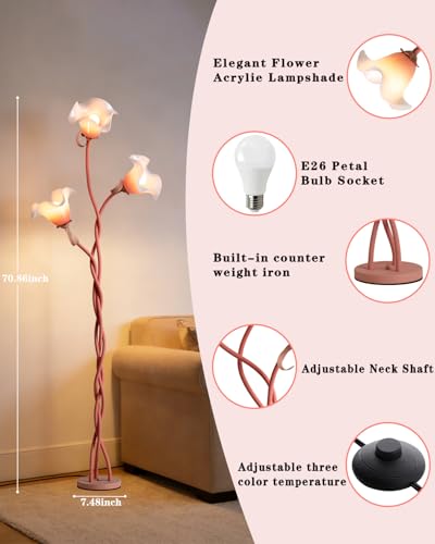 COLOR TEMPERATURES WITH DIMMING --- Versatile LED floor lamp offers three adjustable color temperatures, from cozy warm white to bright cool daylight. Seamlessly dim the brightness to set the perfect mood for any activity. Its elegant flower lamp design, paired with a weighted base, ensures the vintage floor lamp remains stable and secure, ideal as a safe corner lamp for homes with children or pets. The modern functionality of this reliable floor lamp makes it a practical yet stylish lighting solution for any room.
