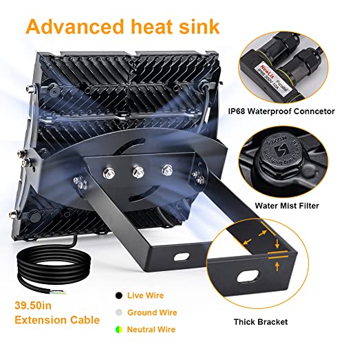 ?Super Bright & Energy Saving?--- This 300w led flood light outdoor produces 33480lm high brightness(1500W Incandescent Equivalent) and saves 90% on your electricity bill.This outdoor flood light is easy to install, on the ceiling, walls, ground, and other locations by adjusting the bracket to different angles and following a few simple wiring steps.