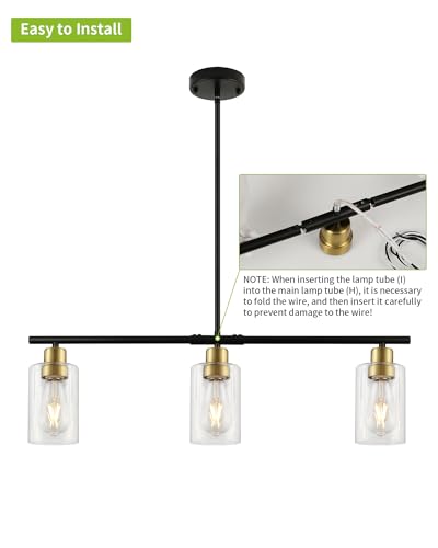 ?Easy Installation?The installation of this 3-light farmhouse light fixture is very easy, including all hardware and instruction, detailed installation instruction will guide easy and quick assembly, save your time and pain. Ideal used as pendant lighting for kitchen island and dining room lighting fixtures hanging. We recommend you contact professional electrician for installation for safety purpose.