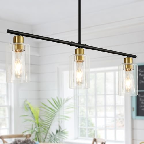 ?Unique Kitchen Island Lighting ?This pendant lights kitchen island with 3 clear glass shade. Simple kitchen island lighting, add classy and elegant beauty to any interior with its rustic farmhouse look, black metal finish suitable for the kitchen island, dining room, living room, etc.