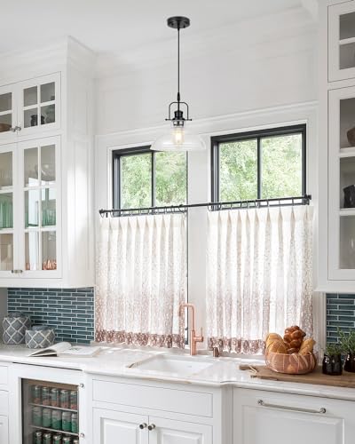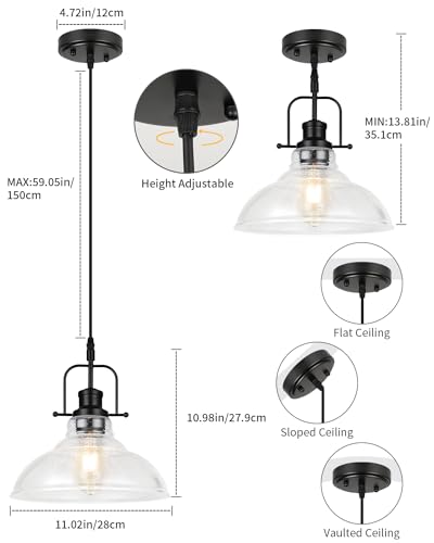?Farmhouse Pendant Light Fixture?WILON black pendant light fixture with clear seeded glass shade brings modern rustic charm to your space while providing soft light. (Warm tips: Please confirm the size before ordering)