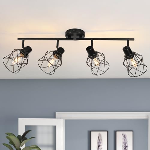 ??Wide Application?This Black ceiling spotlights can be used as kitchen ceiling lights fixtures, farmhouse light fixtures ceiling, hallway light fixtures ceiling, laundry room light fixtures, entryway light fixture, etc. The black track lighting fixtures with an open geometric cage design that allows the light to reach the entire area and exude a comforting country glow.
