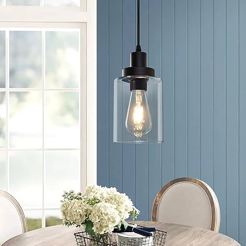 Durable Material: The hanging pendant light mixing with high quality matte black metal finish and clear glass shade, eemits a comfortable glow to brighten up the whole space, Give your home a timeless retro touch and a modern warm aesthetic.