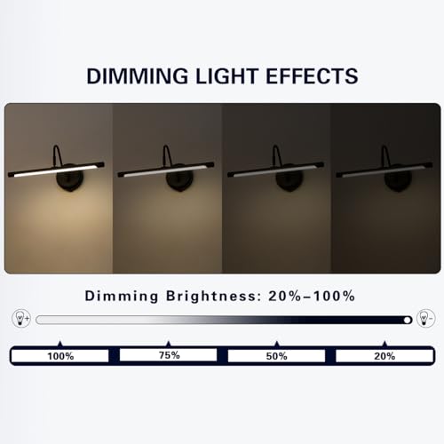 Dimmable Remote Control Operation: Easily adjust brightness levels (20%-100%) using the included remote. Our wireless picture light provides customized accent lighting to highlight your valuable artwork while maintaining optimal viewing comfort