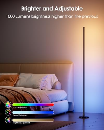 SMART CONTROL: The smart LED floor lamp can be controlled by the remote control and APP, which can better control the color and brightness. Remote control distance 5-10 meters, APP control distance 10-30 meters. You can choose your favorite color, lighting mode, music, brightness and even lighting speed, cycle through static colors or dynamic color changing scenes through the app