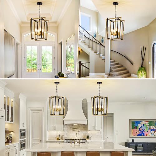 ?Black and Gold Chandelier & Durable Metal Frame - This kitchen island pendant light adds protection to the bulb with a high quality Geometric metal frame and heat resistant pendant base. The black paint on the surface of the fixture prevents rust and fading, extending the life of the pendant.