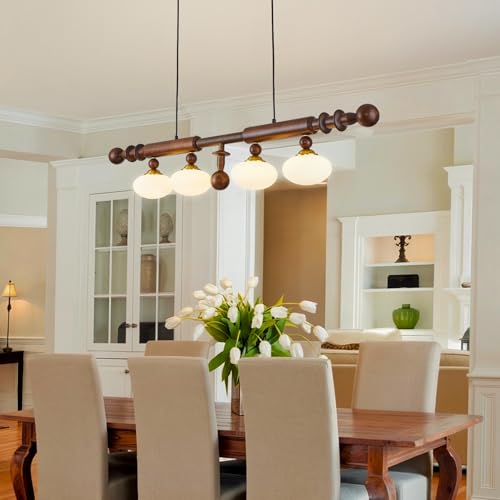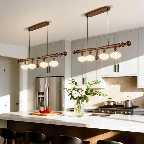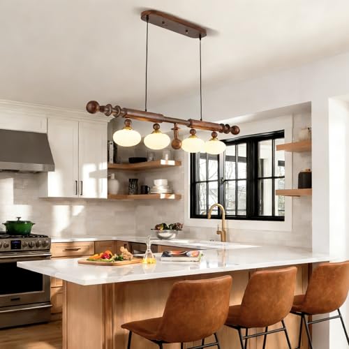MODERN MEETS FARMHOUSE: Enhance the beauty of your kitchen with our dining room light fixtures over table. Crafted from quality wood, metal and glass materials, it combines the warmth of rustic charm with the clean lines of modern design. This kitchen light fixtures is perfect for adding farmhouse charm to your kitchen.