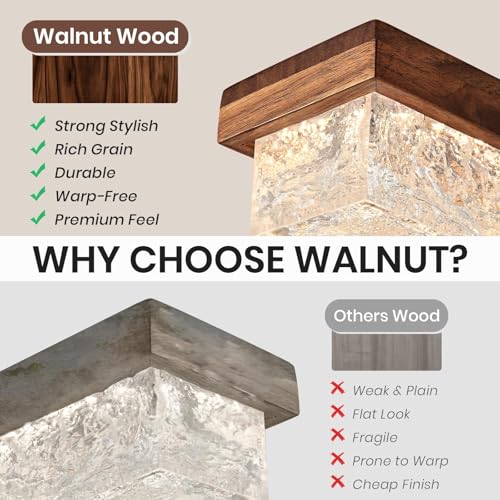 [Height Adjustable Wooden Dining Room Light]Chandeliers for Dining Room Light Fixture can be hung up to 47.2 inches in length and 40.5 inches in width,the height of the walnut chandeliers can be freely adjusted to adapt to rooms with different floor heights,and it is flexible and easy to install.