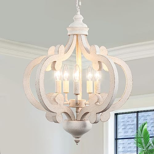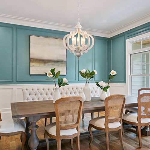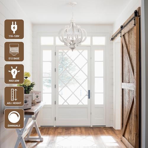 [Vintage Farmhouse Style]: The french country chandelier are made of sturdy distressed wood frame and antique white finish. The white vintage finish gives this wooden chandelier a retro industrial and nostalgic look, bringing a unique vintage style and french country atmosphere to your home decor