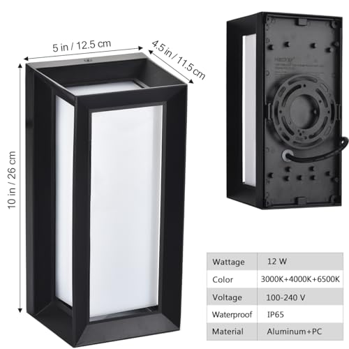 3 Color Choices - Say goodbye to single-color outdoor lighting. The LED modern porch lights outdoor provides 3 color temperatures, including warm white 3000K, neutral white 4000K, and cold white 6500K. With a simple wall-mounted switch, you can instantly transform the ambiance of your outdoor space to suit your mood or the occasion.(Switch not includ)