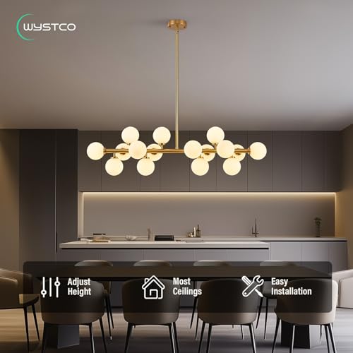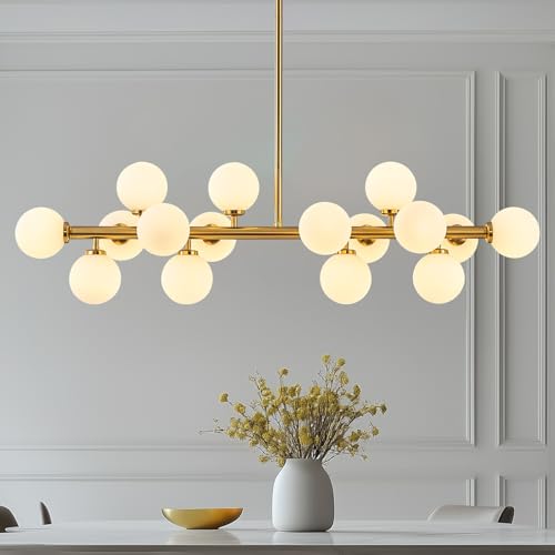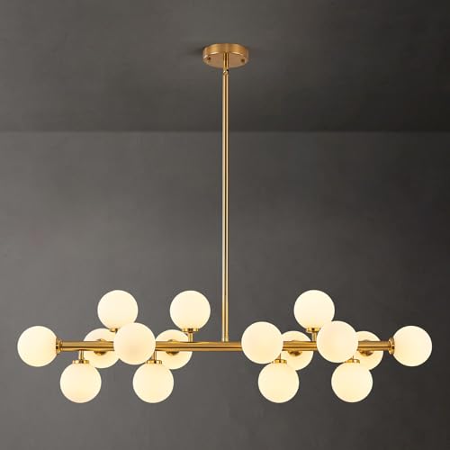 Unique Design: This 16 Globe Chandelier milk white hand-blown glass looks very special and creative. Open bottom is easy for changing bulbs. Besides, the metalbody is painted to be antique brushed brass gold to add a sense of luxury. Special design can highlight the perfect lighting effect.