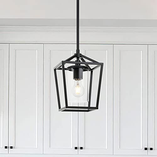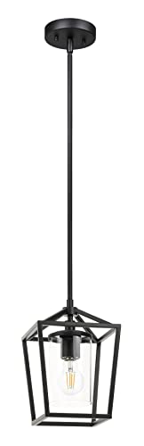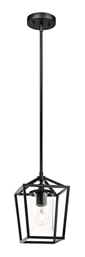 FEATURE: Black Pendant lighting with clear glass and durable iron lantern cage and various rods in matte black finish are commonly used as general lighting in the center of a bedroom, kitchen, living room, hallway etc. This 1 light pendant light is suitable for most home decorative styles and it can provide more lighting when installed on a kitchen island or dining table.