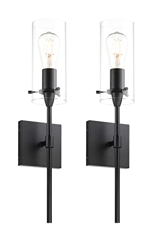 MODERN DESIGN: Sconces wall lighting is made of matte black body and square backplate and clear tube glass that diffuses the light source to create a warm atmosphere. This black wall sconce striking design will add a modern and more layered look to your space.